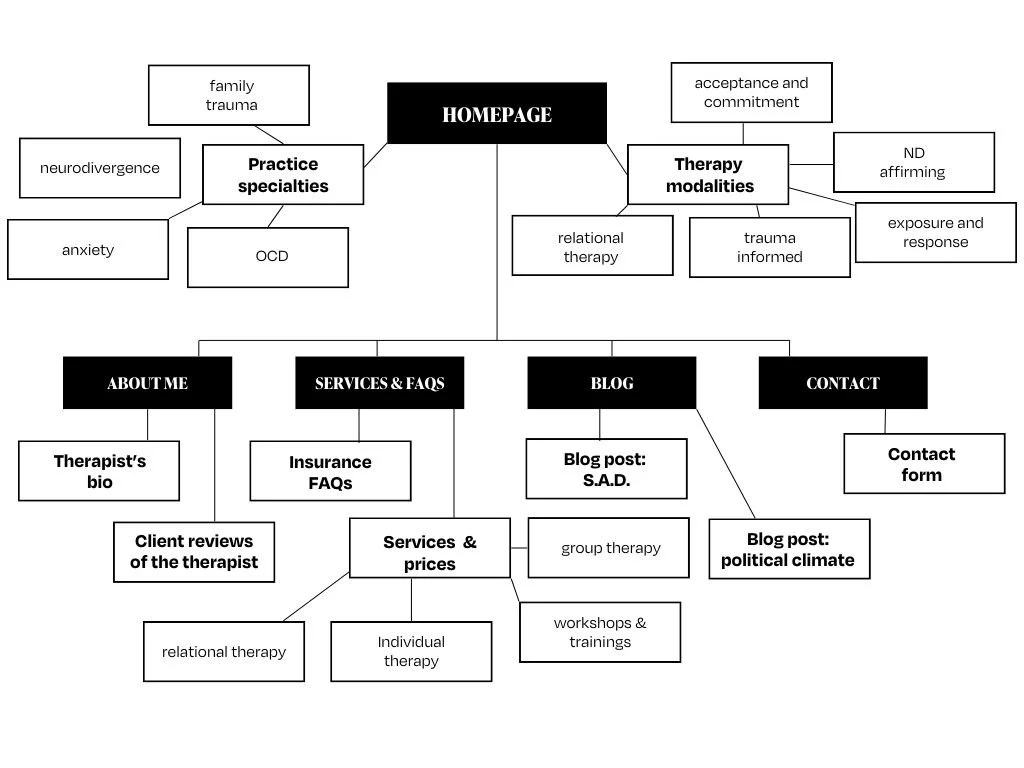 Using stakeholder interviews, I crafted a vision statement: “Safe Haven Therapy is a mental health practice designed to empower individuals facing anxiety, OCD, and developmental/family trauma. Safe Haven Therapy emphasizes neurodiversity-affirming care that is grounded in both clinical expertise and lived experience.